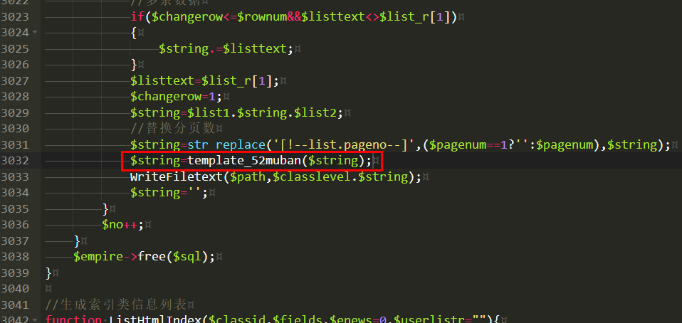 2,找到function ListHtml($classid,$fields,$enews=0,$userlistr=""){ 在这个函数下面 找到:WriteFiletext($path,$classlevel.$string);