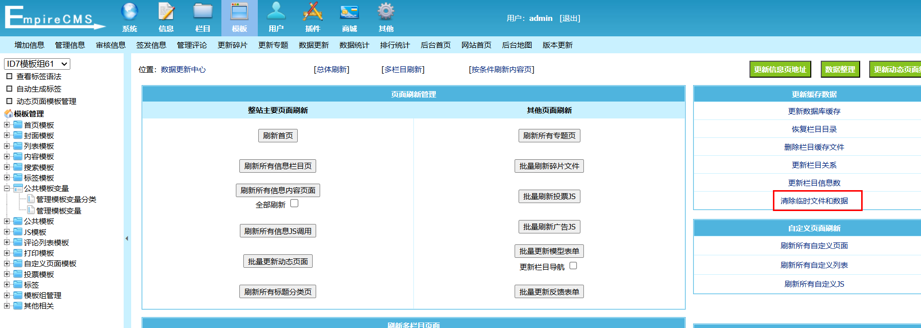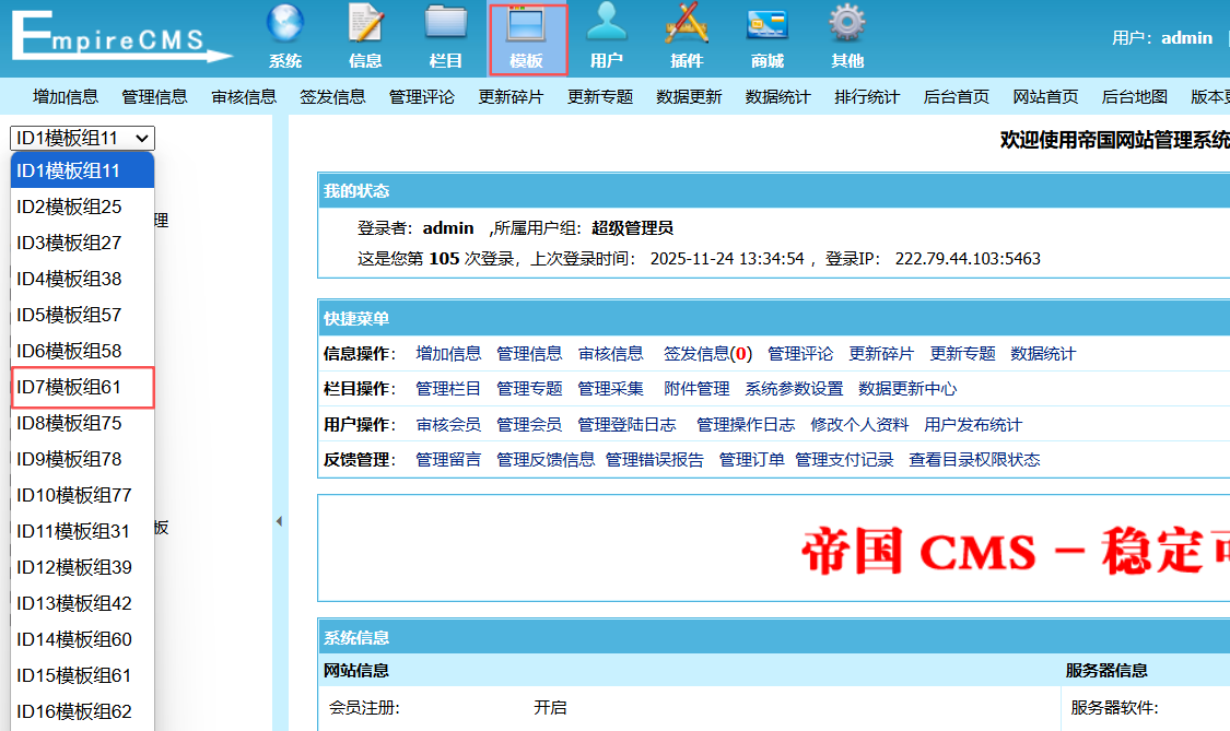 1,首页要先找到改模板的所在的id模板组,例如,我这个事id7的,我就选择id7