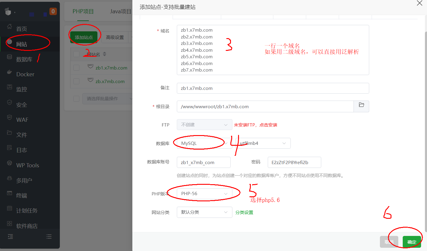 - 域名:添加准备建站的域名,一行一个,,“带www”和“不带www”可都添加