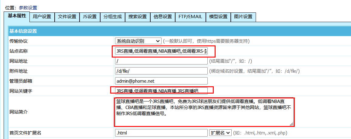 登录网站后台,进入界面: 系统 》系统参数设置 》参数设置